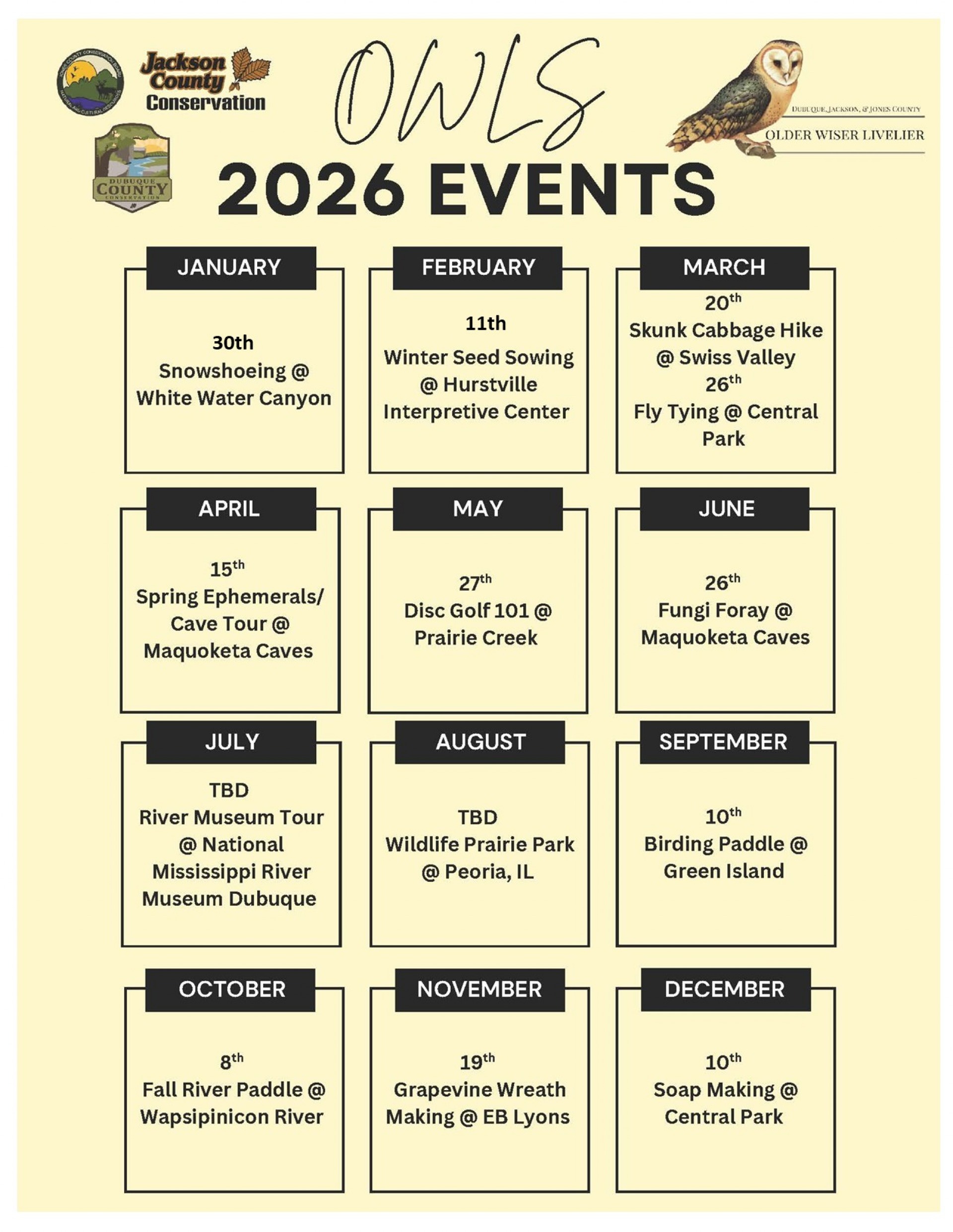 Mark Your Calendar Now for Our 2026 OWLS - Older Wiser Livelier Souls - Events!